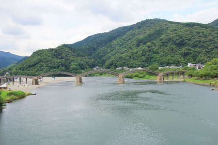 the Kintai bridge in the summer season