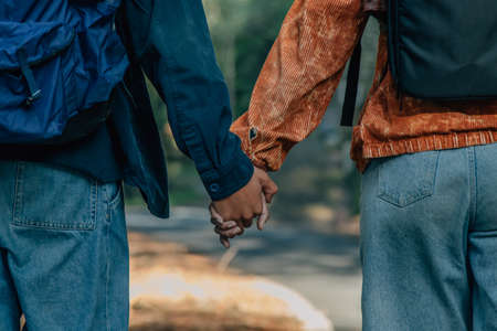 Sometimes all we need is a hand to hold. Low angle shot of an affectionate couple holding hands outdoors.