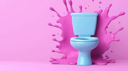 This vibrant image features a colorful toilet surrounded by a playful pink splash, set against a bold pink backdrop. Perfect for creative bathroom decor concepts.