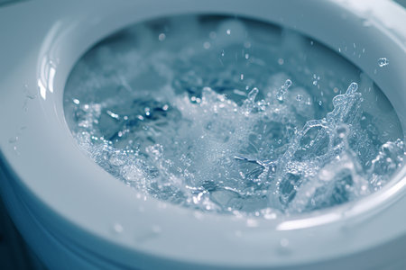 Close-up shot displaying water splashing in a white bidet bowl. The focus is on the clarity of the water and the fixture's cleanliness.