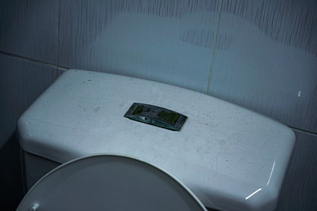 Toilet barrel water flush tank in the toilet drain or bathroom.