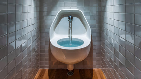 Public gentlemen toilet restroom. Interior and Healthcare concept. Hygiene in shopping mall theme