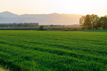 Beautiful rural scenery at summer day in Furano Township, Hokkaido, Japan.