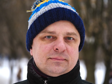 Portrait of a mature man in a warm knitted hat