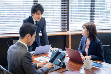 Middle-aged successful executive businessman having a meeting with his assistant in office.