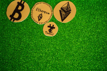modern crypto currency on a green shiny background