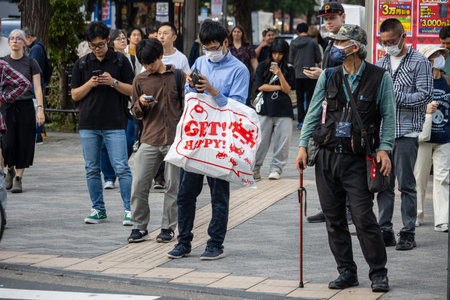 Tokyo, Japan, October 31, 2023: People Wearing Branded Clothing on a Busy City Street