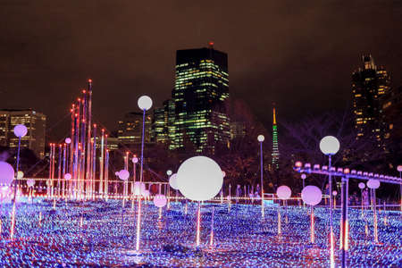 Roppongi Hills winter illumination festival, night view at Mori Garden Park, beautiful view, popular tourist attractions, travel destinations for holiday, famous events in Tokyo city, Japan