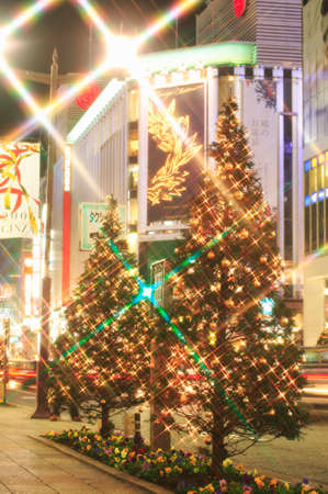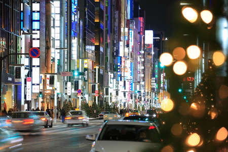 TOKYO - November 28, 2015: The Ginza District November 28, 2015 in Tokyo, Japan. Ginza extends for 2.4 km and is one of the world's best known shopping road districts.