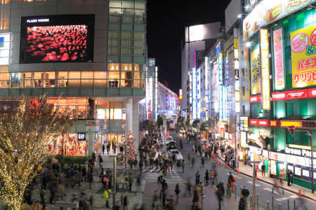 Tokyo, Japan. May 30, 2015. The shibuya district in Tokyo with blurred people. Shibuya is popular in Tokyo for his pedestrian cross where pedestrians cross in the same moment from all directions.