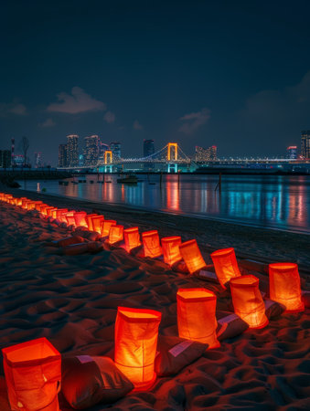 Beautiful scenery of Tokyo bay and rainbow bridge at night in Tokyo, Japan