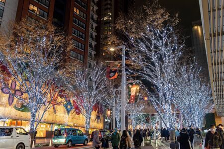 Sendai; Japan - 31 Dec 2019: People are traveling the Jozenji street in Sendai for New Year light up Celebration.