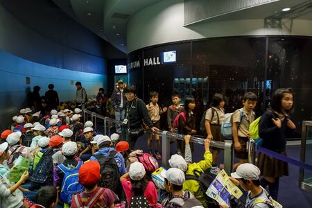 OSAKA, JAPAN - OCTOBER 28: Science Museum in Osaka, Japan on October 28, 2014. Unidentified group of Japanese students in front of The Planetarium at Osaka Science Museum