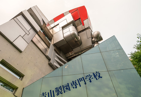 TOKYO - JUNE 1, 2016: Aoyama Technical College modern building. It is a very famous skyscraper similar to a giant robot.