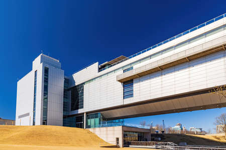 Arkansas, MAR 19 2022 - Sunny view of the modern William J. Clinton Library and Museum