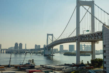 Tokyo, JAPAN - October 20, 2016:Bridge and cityscape rainbow bridge at Tokyo