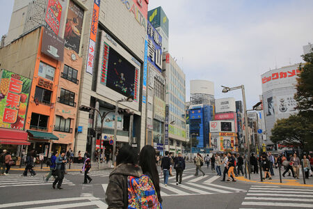 Tokyo, Japan. May 30, 2015. The shibuya district in Tokyo with blurred people. Shibuya is popular in Tokyo for his pedestrian cross where pedestrians cross in the same moment from all directions.