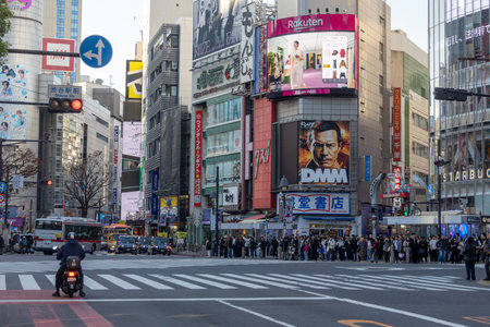 Tokyo, Japan- 16 Dec 2025: Shibuya Scramble Crossing in Shibuya area, Tokyo. It is rumoured to be the busiest intersection in the world and is one of Tokyo's most recognizable sights