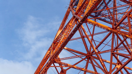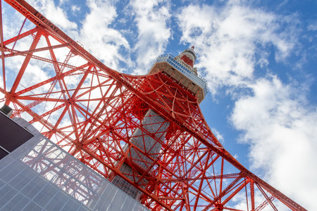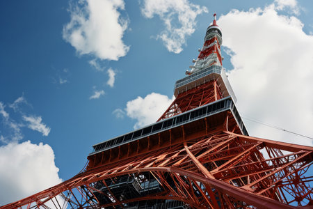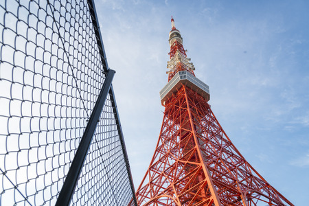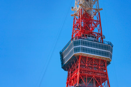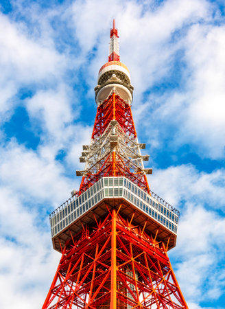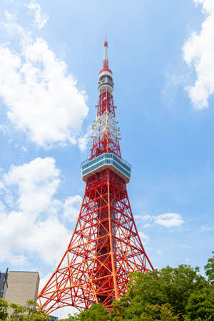 Tokyo, Japan - August 2018: Steel construction of Tokyo Tower in summer
