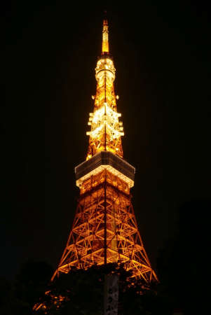 Tokyo Tower, lit up at night, is one of the symbols of Japan.