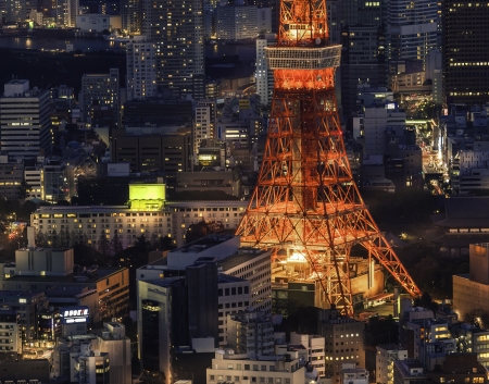 View of downtown area of Tokyo city near the Tokyo Tower, the most iconic landmark in the city.