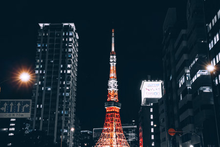 Tokyo, Japan- 22 Dec 2025: Iconic landmark Tokyo Tower in Japan. This orange-red radio tower defined the skyline of Tokyo for many year and most popular touristic spot