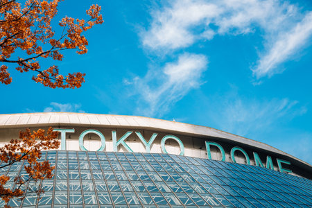 Tokyo, Japan - November 26, 2018 : Tokyo dome stadium with autumn maple