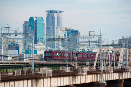 Monochrome landscape of railway and buildings. Shooting Location: Shinjuku Ward, Tokyo