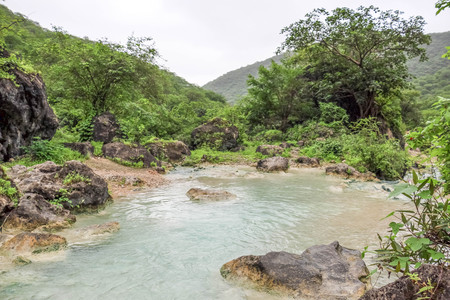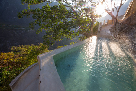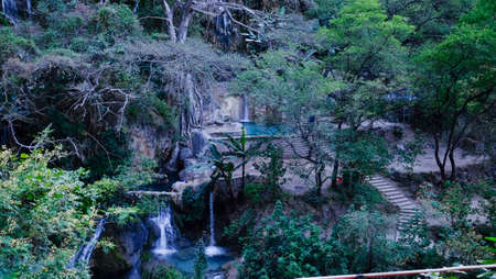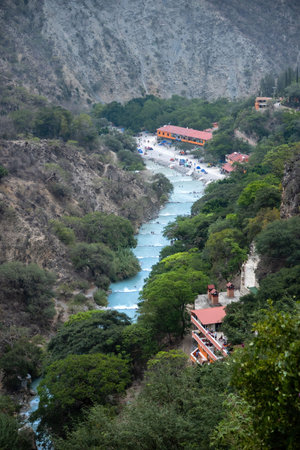 Landscape of the popular thermal hot springs at Grutas de Tolantongo, Mexico