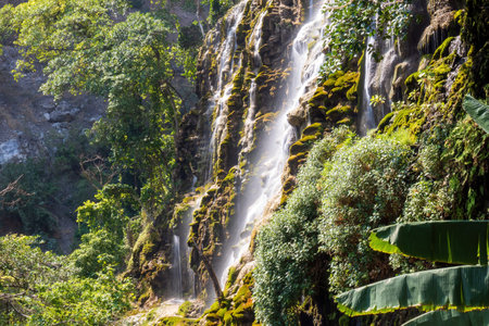 Huge waterfall in the middle of a humid forest. Holy water baths. Ecuador