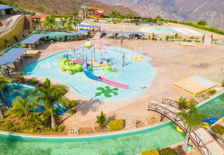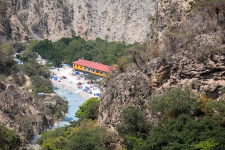 February 2018 Chicamocha National Park Colombia, these are the pools of Chicamocha National Park where tourists relax after visiting the park's canyon.