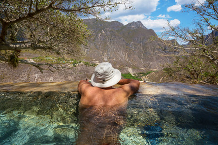 Tourist relaxing in natural thermal pools Las Grutas De Tolantongo in Mexico