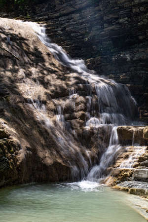 beautiful waterfall in the summer rocky forest of the Krasnodar Territory.