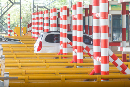 Cars passing through the point of toll highway, toll station.