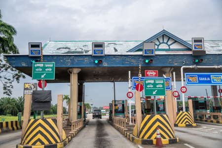 Selangor, Malaysia - November 28, 2019: The varoius type of vehicle road toll such as Touch'NGo and Smart Tag at PLUS Highway near Serdang.
