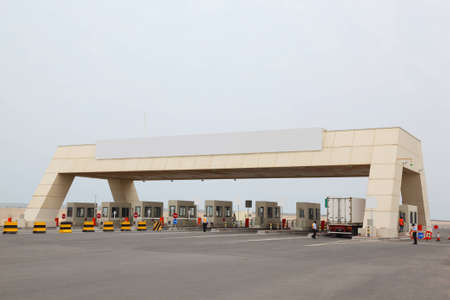 checkpoint and toll booth on the toll section of the road
