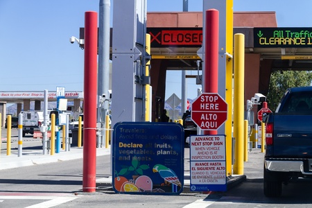 LUKEVILLE, AZ, March 2013: Warning signs at the US inspection station, entering the United States from Mexico