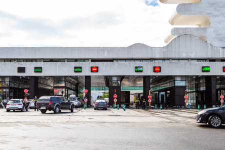 Brazi - March 15, 2022: toll gate on the highway
