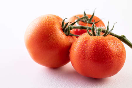 Fresh tomatoes sprinkled with water Fresh tomatoes covered with dew droplets