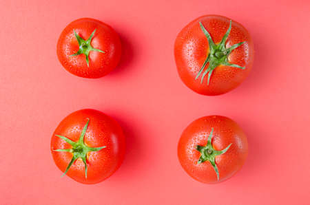 Bright, red and ripe tomatoes on pink background.Close up.