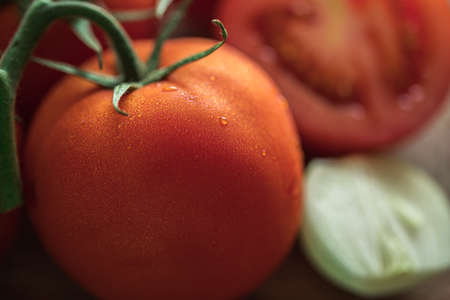 Fresh tomato with droplets of water