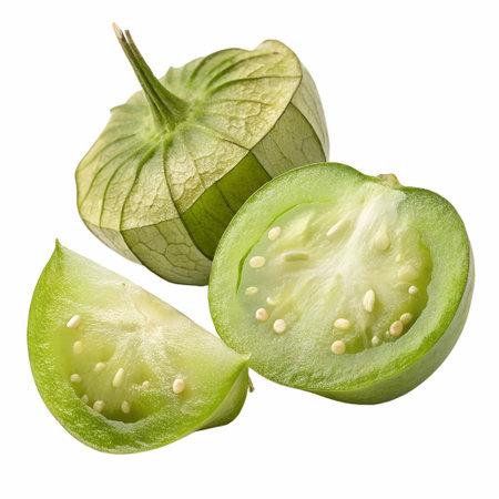 Tomatillo vegetable with slice isolated on a transparent background