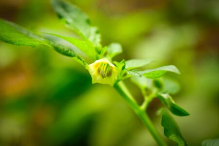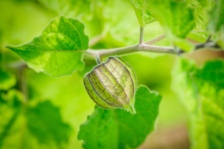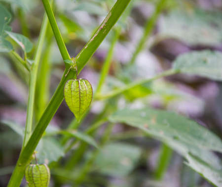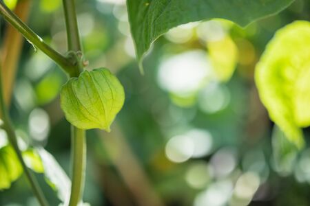 Physalis angulata. An outstanding colorful textures of swell calyx which beautiful green pattern, covered fruit inside. close up, natural sunlight