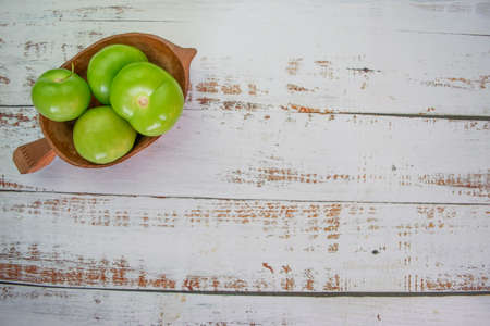 green tomatillos (Physalis philadelphica) with copy space on white background