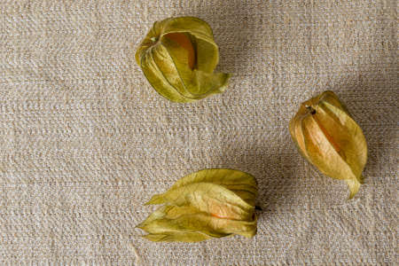 Golden berry, tropical fruit uchuva. top view - Physalis peruviana