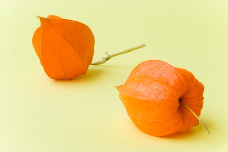 Physalis or Chinese lantern fruit decorated on a wooden table
