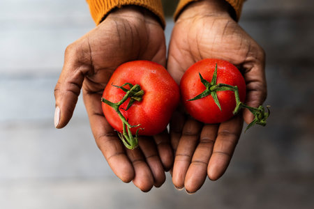 Hand holding tomato nature product