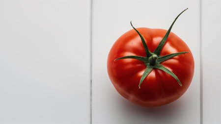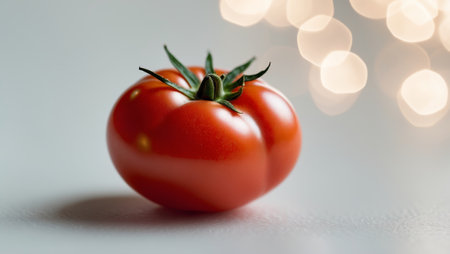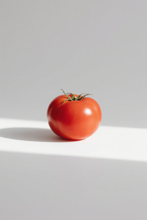 A close up of a tomato on top of white surface, AI