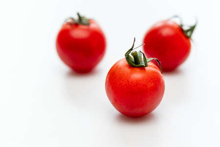 Three cherry tomatoes on white background