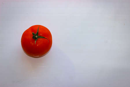 One tomato on a white surface